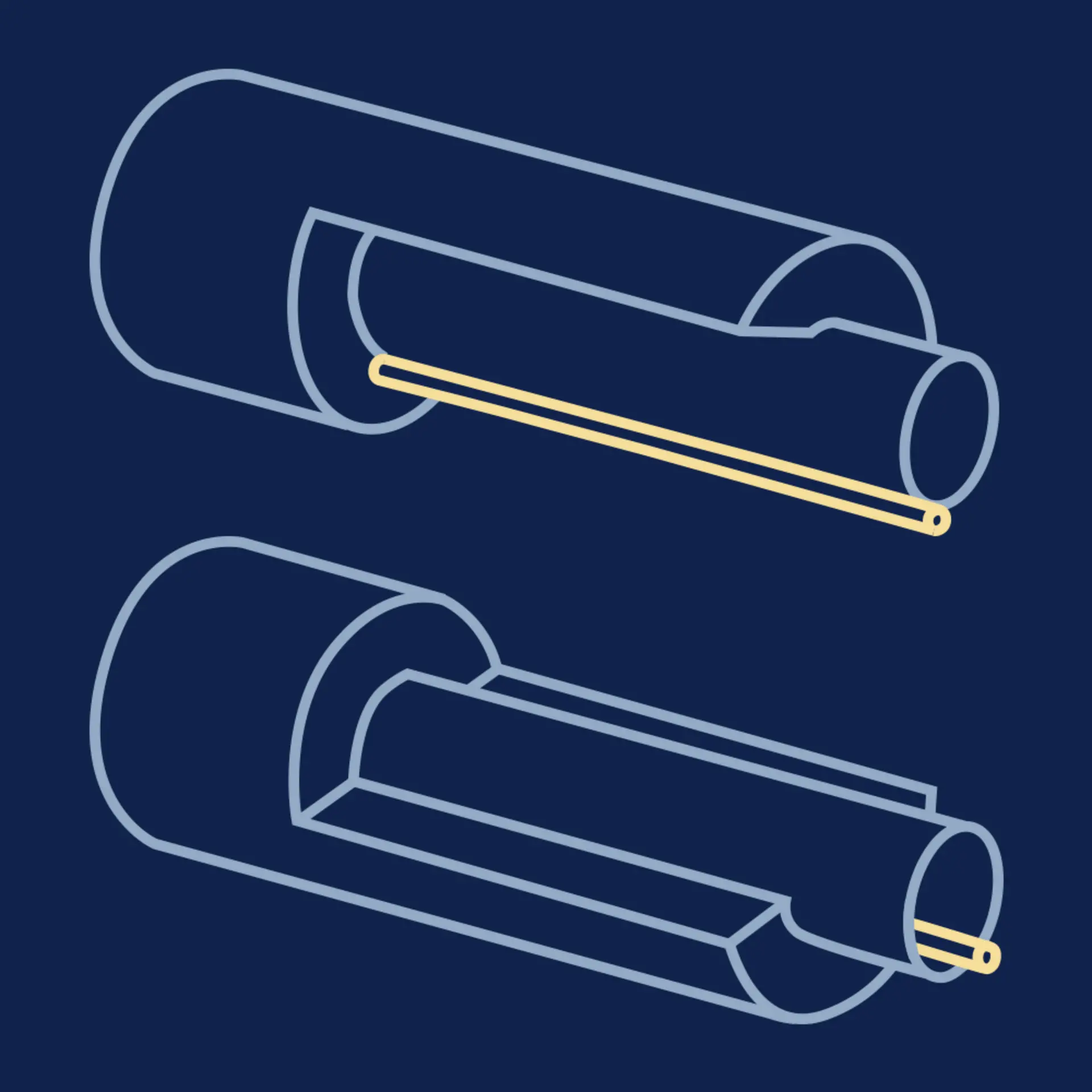 Tack vare att värmekabeln är självreglerande kan den inte överhettas. Inte ens om den korsläggs för perfekt passning till röret. Den är parallellresistiv, vilket betyder att den självreglerande värmekabeln består av två parallella ledare gjutna i ett halvledarmaterial som anpassar sin effekt efter omgivningstemperaturen. Även om det är plusgrader ute och frostskyddseffekten inte behövs, kommer värmekabeln ändå att vara tillslagen. För att stänga av den helt behöver du dra ut stickproppen eller använda Frostvakt Control som slår av effekten vid plusgrader. Vid längre kablar och invändig förläggning rekommenderas alltid styrning med termostat.