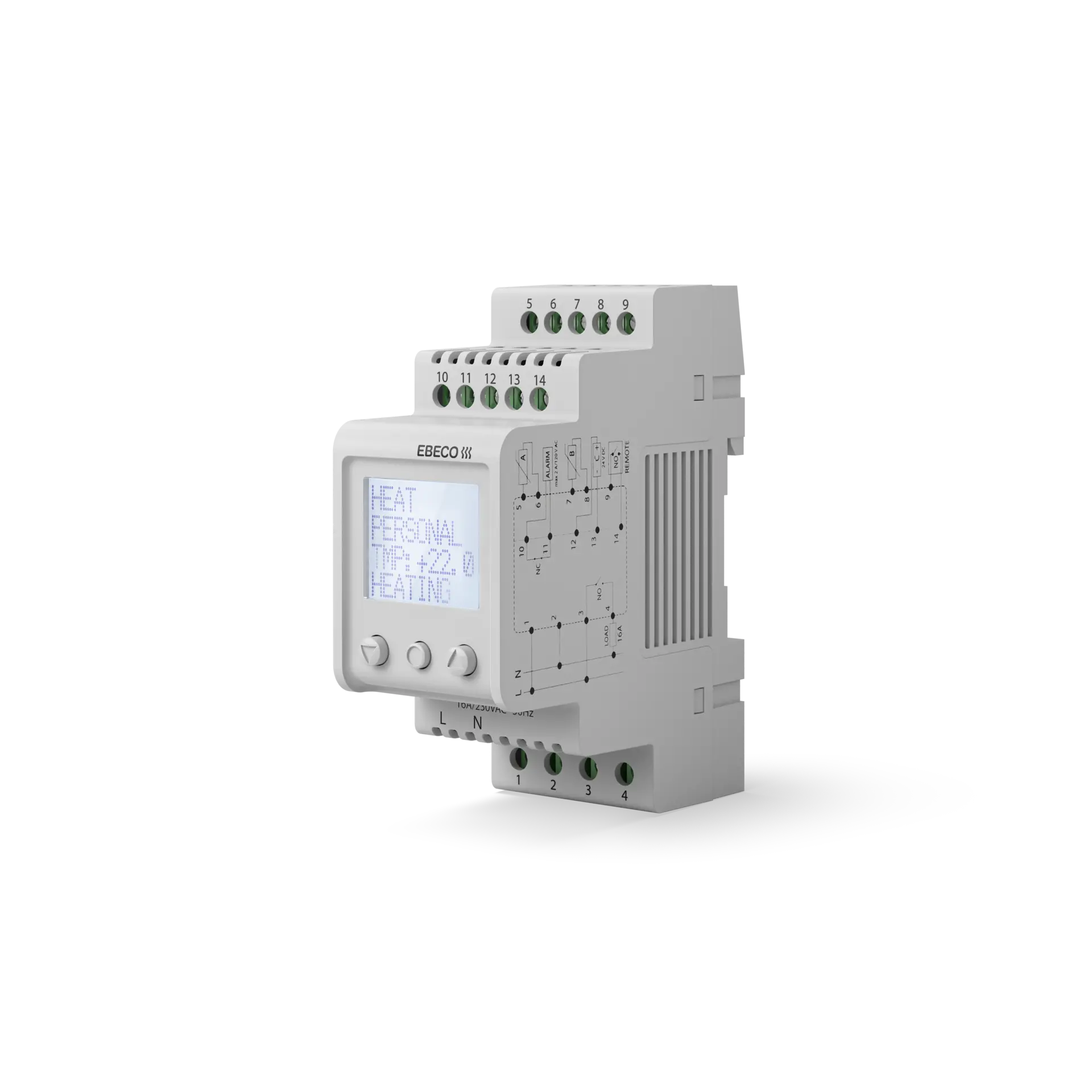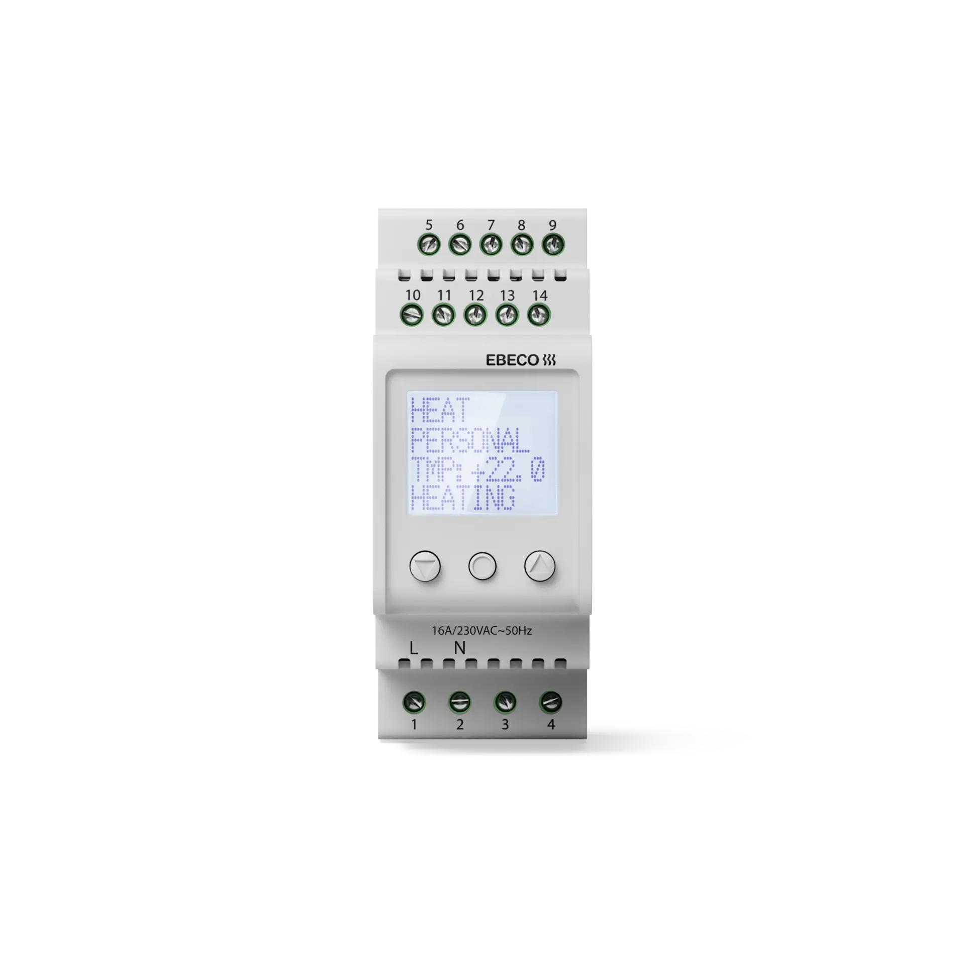 EB-Therm 800 är en DIN-monterad digital termostat i normutförande med fyra inbyggda driftlägen; Värme, Kyla, Industri & Max/Min. Termostaten passar därmed i allt från boendemiljöer, kontor och lagerlokaler till temperaturstyrning av industriella processer och snösmältningssystem för både mark och tak. Termostaten ger också möjlighet att koppla in en fjärrstyrningsenhet. EB-Therm 800 har även ett hotellprogram som kan styras via extern kortläsare med eftergångstid med hjälp av termostatens integrerade tidreläfunktion.